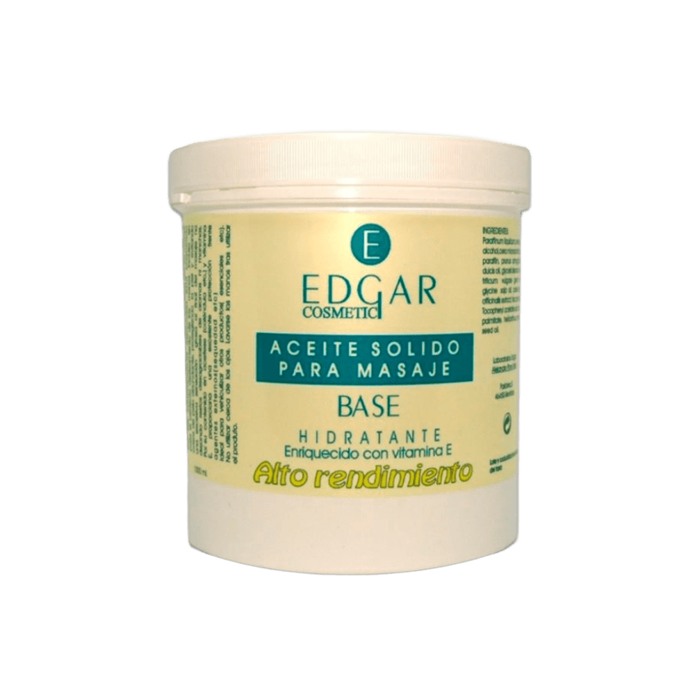 Aceite Sólido de Masaje Edgar Alto Rendimiento – 500 ml Aceite sólido de masaje con textura fundente y gran poder deslizante. Ideal para sesiones prolongadas sin reaplicación. Formato de 500 ml, alto rendimiento.
