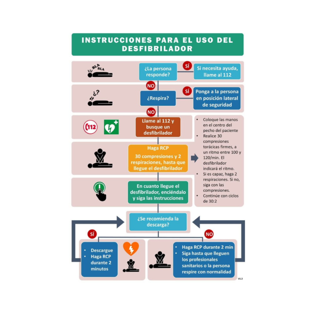 Adhesivo Instrucciones de Uso Desfibrilador – Formato A4 para señalización de emergencia Adhesivo informativo en tamaño DIN A4, diseñado para mostrar de forma clara y visual los pasos a seguir en el uso de un desfibrilador (DEA). Perfecto para colocar en vitrinas, paredes o espacios públicos, facilitando la actuación rápida y correcta en caso de paro cardíaco. .