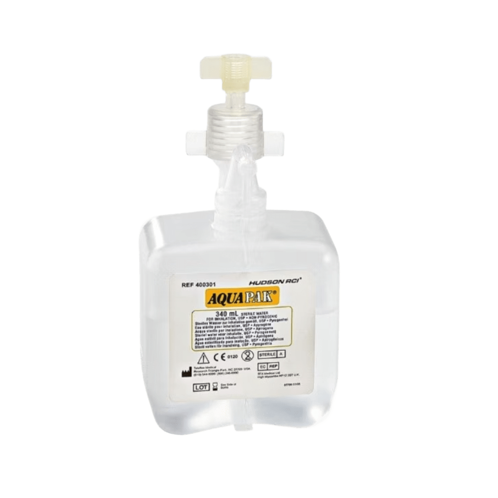 AQUAPAK™ – Humidificador Precargado con Adaptador, Solución silenciosa y segura para la humidificación de oxígeno El humidificador precargado AQUAPAK™ ml de HUDSON RCI está diseñado para proporcionar una humidificación eficaz y silenciosa en terapias respiratorias con oxígeno. El sistema está compuesto por una botella estéril de polipropileno y un adaptador de humidificación estéril de policarbonato, con un microdifusor que genera burbujas finas para mejorar el intercambio de humedad en el aire administrado. Cuenta con un conector con cierre rápido para facilitar la conexión con tubos de oxígeno y una alarma sonora incorporada en el adaptador, que avisa en caso de reducción del caudal. Es compatible con mascarillas de oxígeno y gafas nasales, y se presenta empaquetado individualmente para garantizar la esterilidad hasta el momento del uso. Características y beneficios: • Adaptador con alarma sonora por bajo caudal • Microdifusor que mejora la humidificación y reduce el ruido • Conector de tubo de oxígeno con cierre rápido • Materiales: botella de polipropileno, adaptador de policarbonato, tubo de PVC, válvula de silicona • Estéril, libre de látex y DEHP • Compatible con mascarillas y gafas nasales .