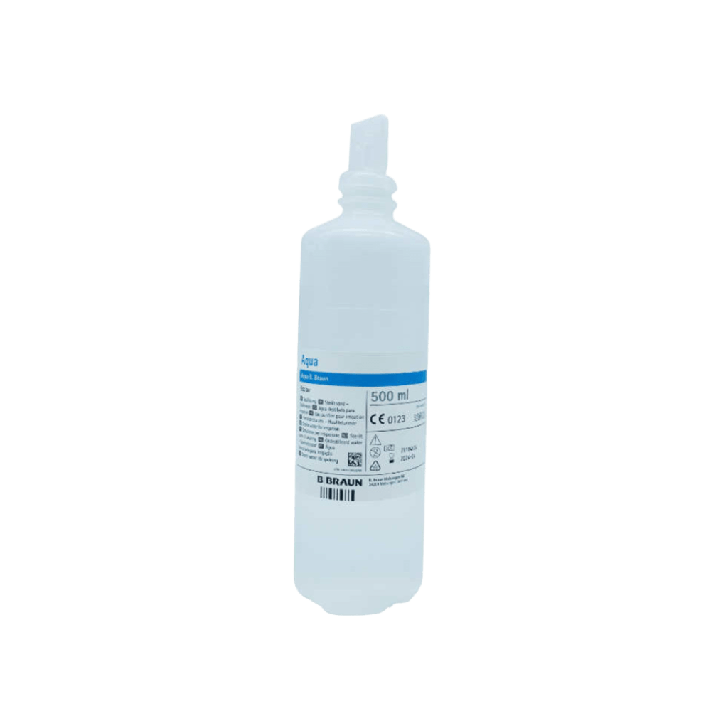 Agua Estéril Destilada 500 ml – Uso médico y clínico Solución de agua destilada estéril en envase de 500 ml. Indicada para irrigación, limpieza de instrumental y otros usos clínicos.