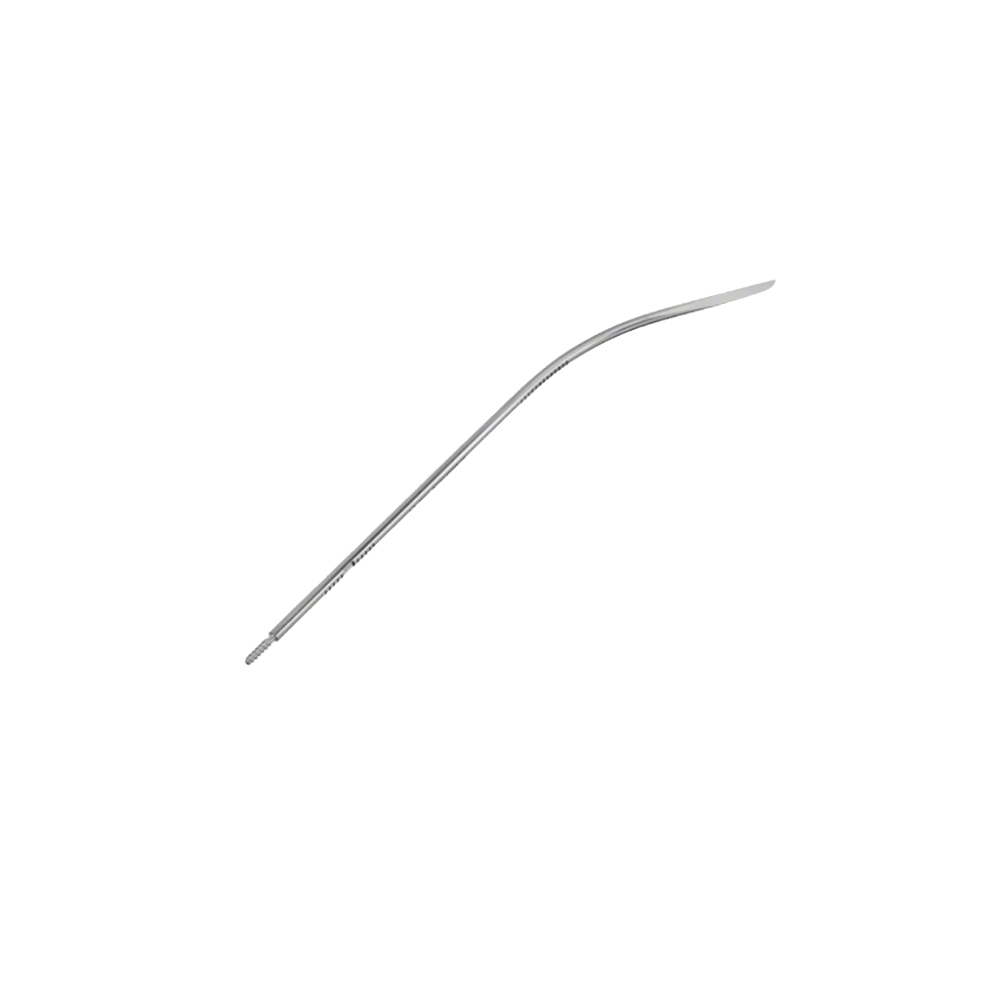 Aguja redón semicurva. Aguja redón semicurva para sistemas de drenaje con vacío integrado, diseñada para evacuar exudados de forma continua en el postoperatorio y favorecer una correcta cicatrización.
