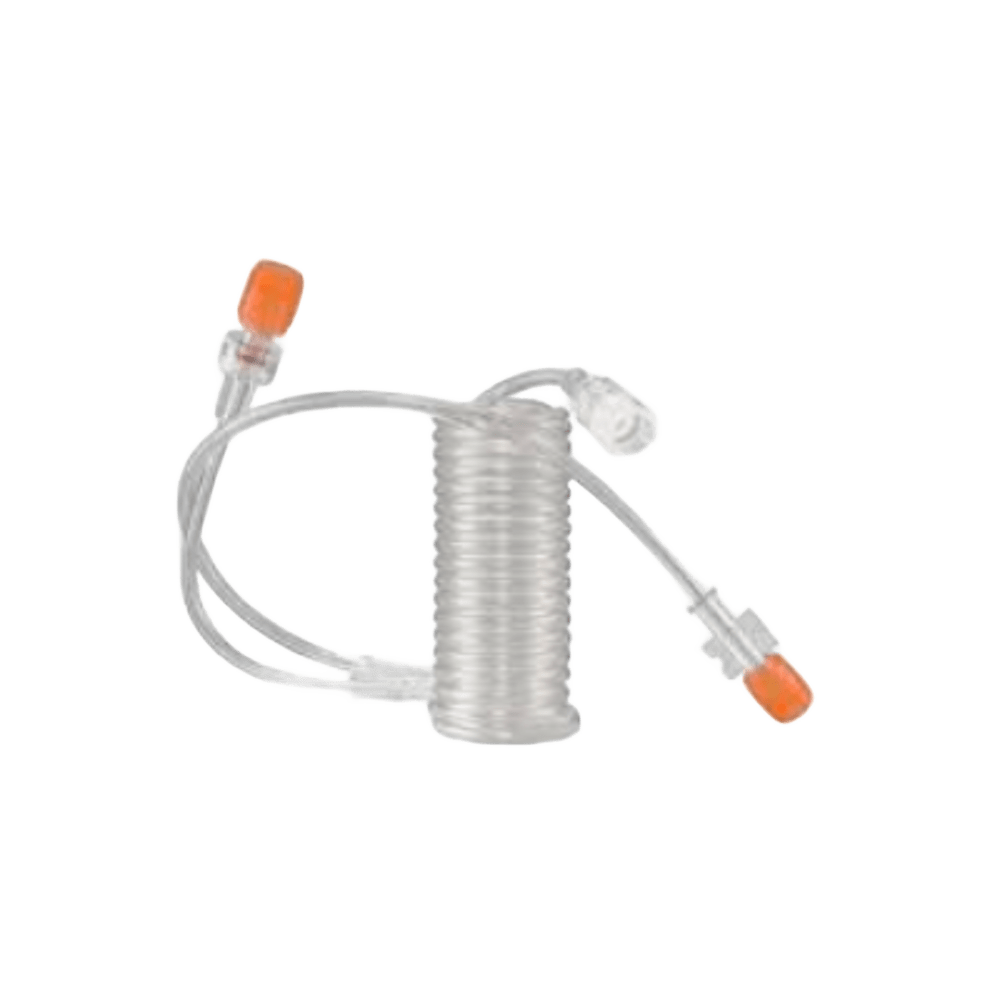 kit para el suministro de medios de contraste utilizando un inyector MEDRAD® Spectris Solaris®. Vía fluida apirógena. Esterilizado por Radiación. No reutilizable. No exceder de 350 psi. Libre de látex. CE 2797 Producto Sanitario Clase IIa Alargadera de 96’’ (244 cm) de baja presión con conector en “T” antirreflujo, formada por dos partes, 1 larga en espiral y 1 corta recta con conectores Luer-Lock, conectadas a cada lado de la “T”. Kit alojado en blíster/bandeja de plástico rígido termoformado. Caja con 50 unidades