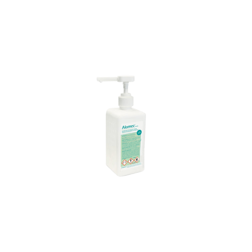 Alomec Solucion-Envase de 500 ml. Gel hidroalcohólico con Aloe vera para la higiene de manos sin enjuague. Ideal para desinfectar piel sana de forma rápida y eficaz.