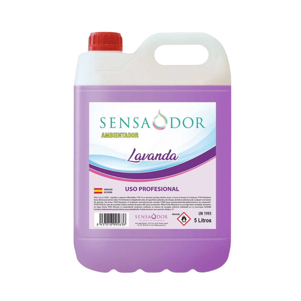 Ambientador Lavanda – Garrafa 5 L Ambientador líquido con aroma a lavanda. Formato profesional de 5 litros, ideal para aplicar con spray y aromatizar eficazmente cualquier espacio.