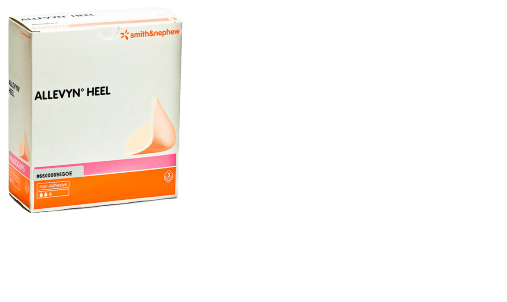 Apósito Allevyn Heel 10,5 x 13,5 cm – Protección adaptada para el talón Apósito trilaminar no adhesivo, altamente absorbente e impermeable. Barrera bacteriana, permite el intercambio de vapor de agua. Diseño anatómico para el talón.
