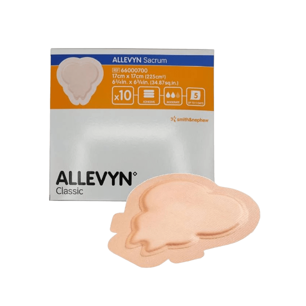 Apósito ALLEVYN Sacrum – Protección avanzada y confort en el tratamiento de heridas en zona sacra El apósito ALLEVYN Sacrum está diseñado específicamente para ajustarse anatómicamente a la zona sacra, proporcionando un entorno óptimo para la cicatrización de heridas con exudado. Gracias a su diseño conformable y acolchado, se adapta fácilmente a la morfología del sacro y otras zonas difíciles del cuerpo, proporcionando un sellado eficaz con sus bordes redondeados, que minimizan fugas de exudado y aumentan el confort del paciente. No se adhiere a la herida, es fácil de aplicar y retirar, y puede mantenerse en la lesión hasta 5 días, reduciendo la necesidad de cambios frecuentes de apósito. Características destacadas: • Diseñado anatómicamente para la zona sacra • Adhesivo de alta tolerancia cutánea – no irrita ni daña • Núcleo hidrocelular de alta absorción • No se adhiere a la herida – fácil de retirar • Promueve la cicatrización en ambiente húmedo • Bordes sellados y redondeados – mayor adaptabilidad y protección • Barrera bacteriana impermeable – evita contaminación externa • Conformable, suave y acolchado – gran confort para el paciente • Hasta 5 días de permanencia en la herida • Fácil aplicación y retirada .
