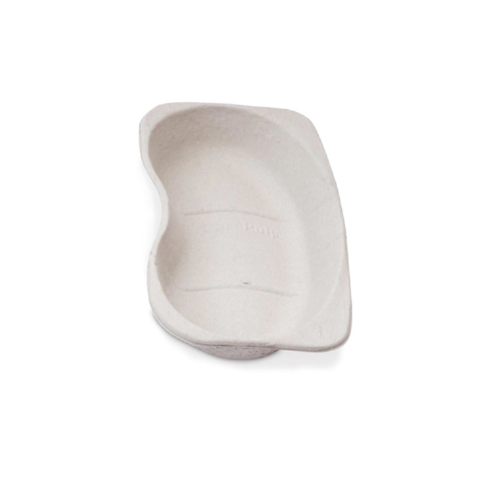 Batea riñonera desechable de cartón, diseñada para la recogida y transporte de muestras en hospitales y clínicas. Fabricada con pulpa de celulosa reciclada, capacidad de 750 ml, resistente a la permeación hasta 4 horas, ligera y biodegradable. Bordes romos y superficie antideslizante, en caja de 300 unidades. Cumple normativa sanitaria PAS 29:1999
