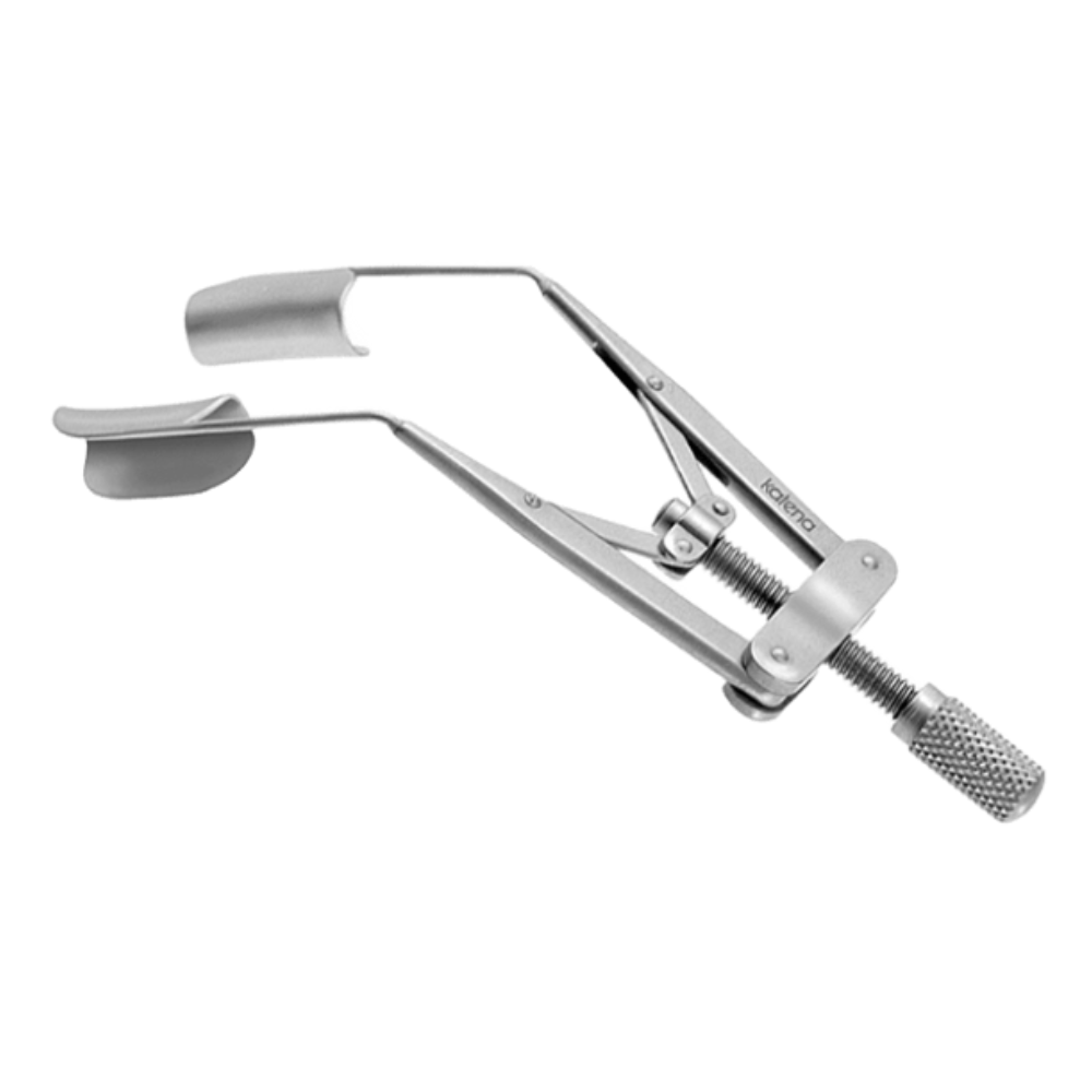 Blefaróstato LIEBERMANN. Separador ocular Lieberman con tornillo de apertura, ideal para mantener los párpados abiertos en cirugías oftálmicas, especialmente en niños.