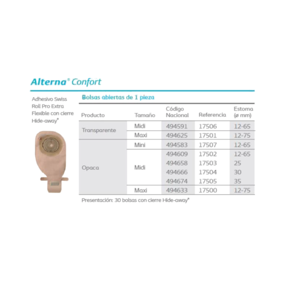 Bolsa confort abierta de 1 pieza especialmente diseñada para recoger heces procedentes de una ileostomía, integrando en un solo elemento el adhesivo y la bolsa. Incorpora un innovador adhesivo en espiral Swiss Roll Pro, fabricado con una combinación de resinas de última generación que garantizan excelente adherencia, protección cutánea y mayor flexibilidad. El adhesivo en espiral está formado por resina marrón con polímeros SIS que favorecen la adhesividad y resina blanca con alto contenido de hidrocoloides, que aporta gran poder de absorción y cuidado de la piel. Su diseño ovalado y biselado permite una mayor adaptabilidad al contorno corporal, con grosor optimizado: más espeso al centro y más fino en los bordes. Cuenta con una bolsa mejorada, revestida con tela sin tejer resistente y filtro de carbón activo para neutralizar olores. El sistema de vaciado Hide-away facilita la evacuación con discreción y comodidad. Características principales: Adhesivo en espiral Swiss Roll Pro con excelente fijación y resistencia al desprendimiento. Alta protección cutánea gracias a la presencia de hidrocoloides absorbentes. Forma ovalada y diseño biselado para mayor adaptación al cuerpo. Adhesivo flexible que mejora el confort del paciente. Bolsa con cubierta suave, filtro de carbón activo y salida discreta tipo Hide-away. .