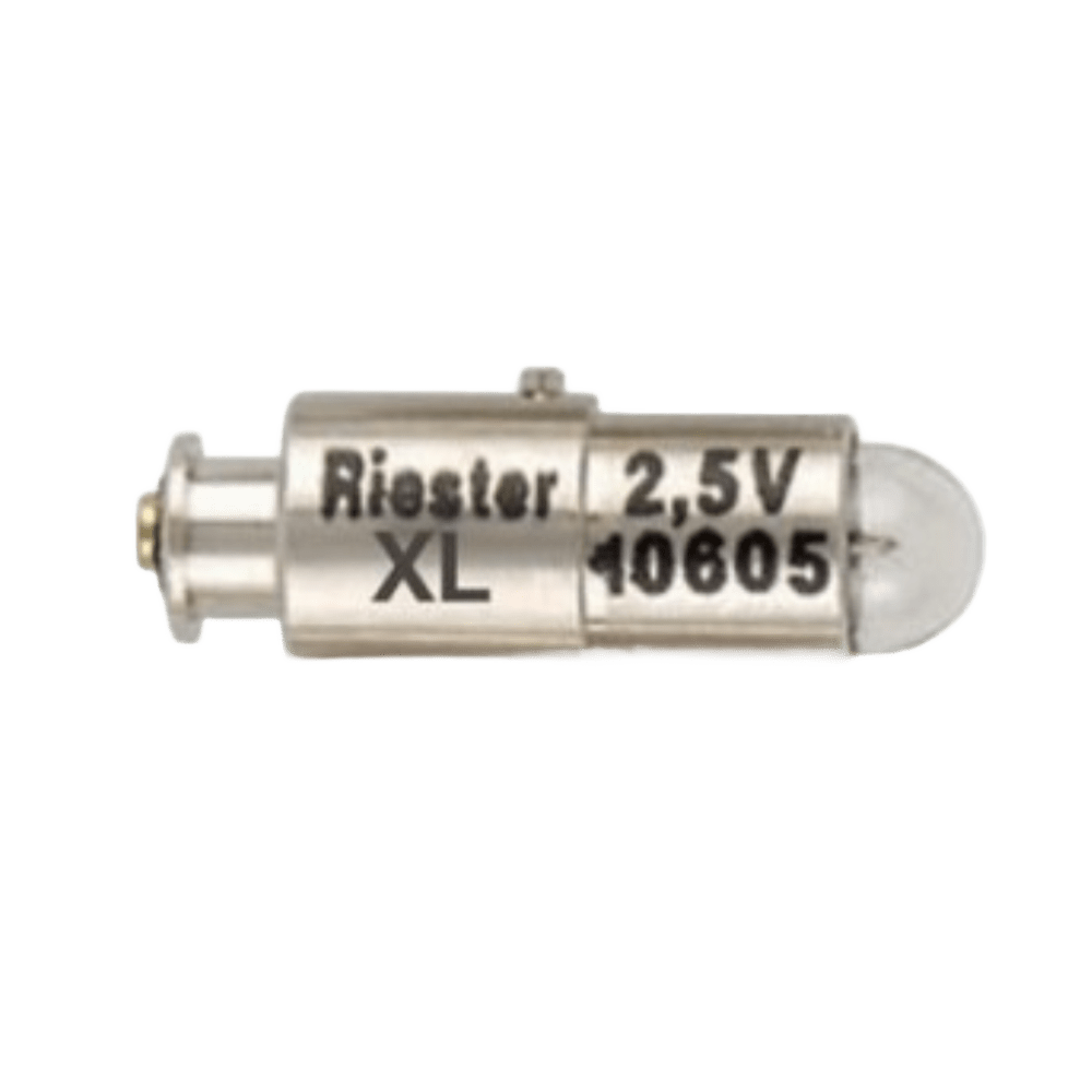 Bombilla de Xenón 2,5V para Oftalmoscopio Riester Ri-scope L1/L2/L3 y Ri-Derma La bombilla de xenón de 2,5V de Riester proporciona una iluminación clara, intensa y de alto rendimiento, ideal para procedimientos de diagnóstico oftálmico y dermatológico. Esta lámpara ha sido diseñada específicamente para ser compatible con los modelos de oftalmoscopio Riester Ri-scope L1, L2, L3 y con el dermatoscopio Ri-Derma. Gracias a su tecnología de xenón, la bombilla emite una luz brillante y natural similar a la luz del día, lo que mejora la visibilidad de los detalles clínicos durante la exploración. Características principales: • Lámpara de xenón de 2,5V. • Compatible con oftalmoscopios Ri-scope L1, L2, L3 y dermatoscopio Ri-Derma. • Iluminación de alto rendimiento y bajo consumo. • Luz blanca y fría, ideal para una observación precisa. • Fácil de instalar. .