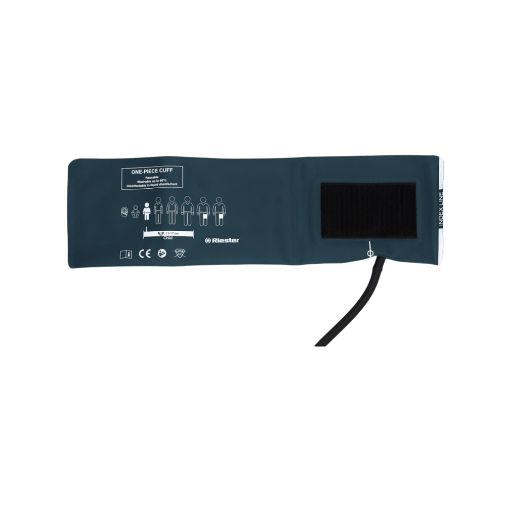 Manguito Reutilizable sin Cámara para Niños – Higiene y comodidad en cada uso El manguito reutilizable sin cámara con una salida está diseñado para la medición de presión arterial en pacientes pediátricos con circunferencias de brazo de 13 a 20 cm. Su acabado suave proporciona una sensación agradable al contacto con la piel, aumentando la comodidad durante la toma de tensión. Fabricado sin látex, es seguro para personas con sensibilidad y permite más de 10.000 usos, ofreciendo una solución duradera y económica para consultas y hospitales. Puede lavarse hasta 60 °C o sumergirse en líquidos desinfectantes, garantizando una higiene completa y evitando contaminaciones cruzadas. Incluye una manguera de aproximadamente 50 cm para una conexión sencilla y rápida al dispositivo de medición. Características destacadas: • Brazalete pediátrico reutilizable sin cámara • Circunferencia del brazo: 13–20 cm • Reutilizable más de 10.000 veces • Lavable hasta 60 °C y apto para líquidos desinfectantes • Libre de látex • Terminado suave y agradable al tacto • Longitud de la manguera: aprox. 50 cm