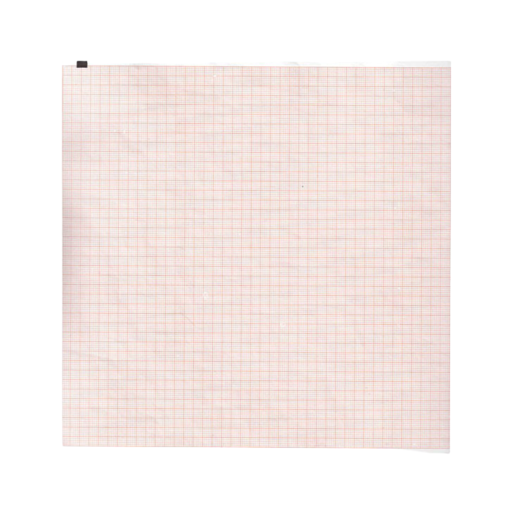 Papel Térmico ECG – 210 mm x 300 mm (200 hojas) Papel térmico diagramado en rojo, plegado en Z. Ideal para registros ECG de alta precisión en equipos médicos compatibles.