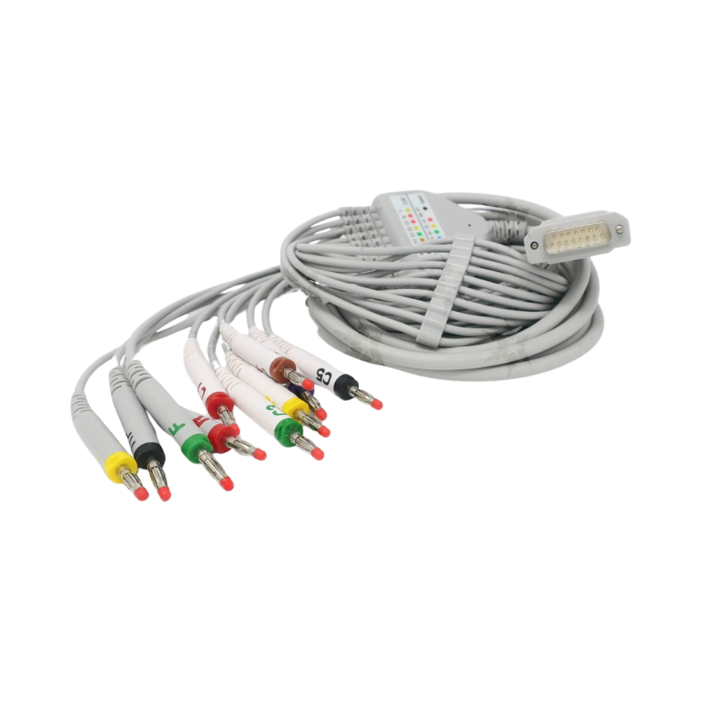 Cable ECG 10 Vías CAREWELL 1103LW – Terminación Banana 4 mm Cable de 10 derivaciones con conector tipo banana (4 mm), compatible con equipos Nihon Kohden, Cardiette y Cardioline. Alta precisión y conexión segura.