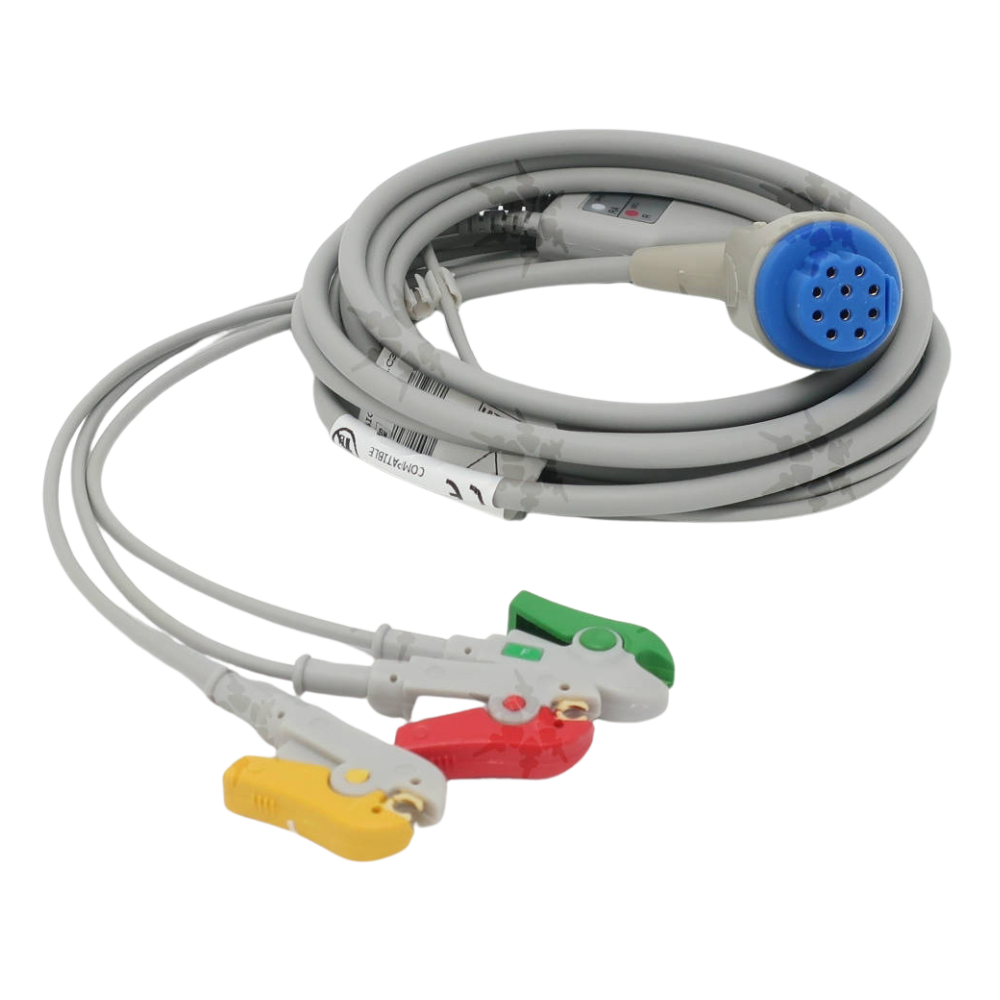 Cable ECG 3 Vías con Pinza – Compatible GE Datex/Elmed Cable de 3 derivaciones con conector tipo pinza, compatible con monitores GE Datex Ohmeda y Cardiocap. Ideal para monitorización cardíaca precisa en entornos clínicos.