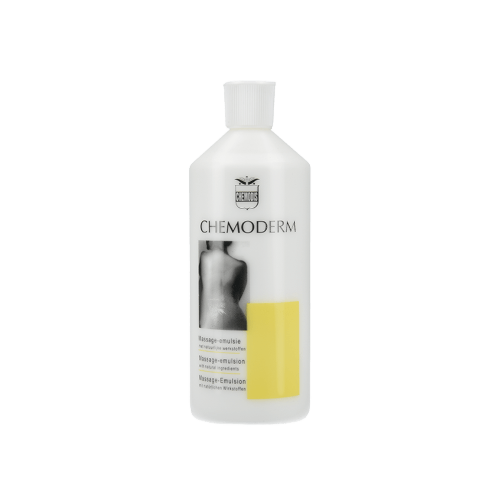 Chemoderm – Emulsión y crema de masaje para el cuidado y nutrición de pieles sensibles Chemoderm es un aceite de masaje hipoalergénico especialmente desarrollado para profesionales que buscan un producto respetuoso con la piel, que al mismo tiempo ofrezca un cuidado intensivo. Su fórmula equilibrada incluye manzanilla, alantoína y vitamina E, ingredientes naturales conocidos por sus propiedades calmantes, hidratantes y regeneradoras. Este aceite es ideal para pieles secas, sensibles o problemáticas, ya que ayuda a prevenir pequeñas irritaciones, mejora la flexibilidad cutánea y estimula la renovación celular, favoreciendo una piel más saludable y protegida. Además, no es necesario retirar la emulsión tras el masaje, permitiendo que sus activos sigan actuando y nutriendo la piel. Chemoderm también está disponible en crema, perfecta para masajes faciales y uso corporal, con las mismas propiedades nutritivas y protectoras. Características principales: • Hipoalergénico y suave con la piel • Enriquecido con manzanilla, alantoína y vitamina E • Ideal para piel seca y problemática • Estimula la renovación celular y mejora la elasticidad • No requiere aclarado tras su aplicación .