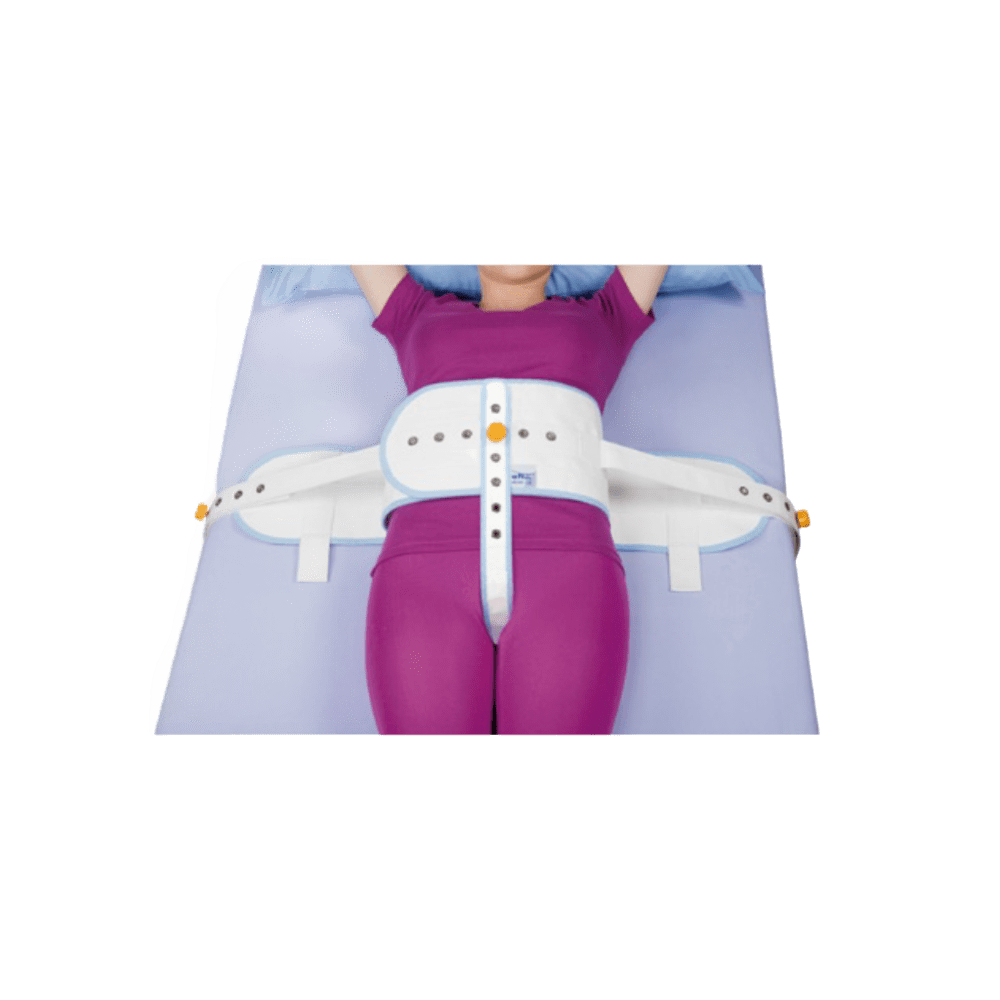 Cinturón estándar con banda perineal cosido. Cinturón Standard de sujeción abdominal diseñado para prevenir auto-lesiones y caídas de la cama o camilla, con sistema de cierre de apertura magnética.