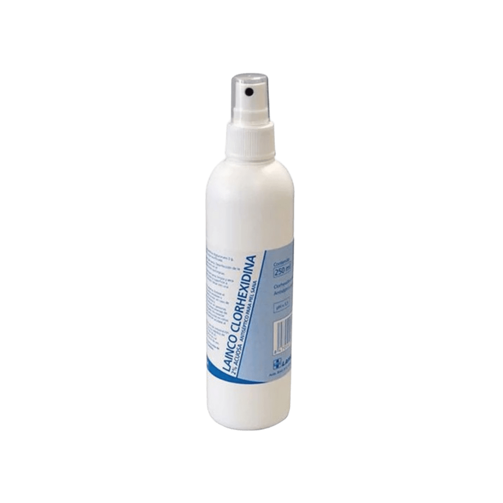 Spray Clorhexidina 2% Acuosa Pulverizador-Envase de 250 ml. Solución acuosa de Clorhexidina al 2% en formato spray pulverizador. Antiséptico tópico para la desinfección de piel sana. Envase de 250 ml con aplicador práctico y preciso.