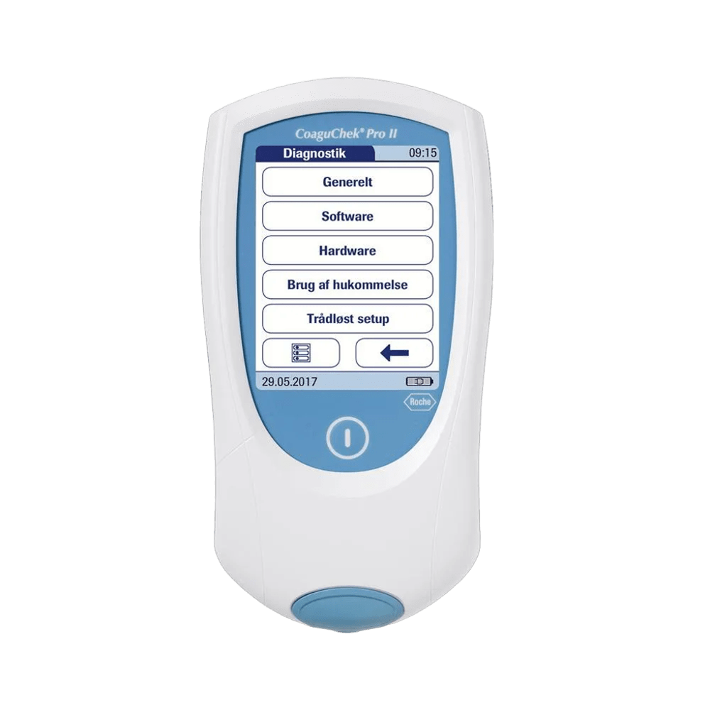Las características y composición: CoaguChek Pro II es un equipo portátil para medir INR, Tiempo de Protrombina (TP) y Tiempo de Tromboplastina Parcial Activada (aPTT) en sangre capilar, venosa o arterial. Cuenta con pantalla TFT a color, lector de códigos de barras integrado y conectividad inalámbrica para gestión avanzada de resultados. Proporciona resultados rápidos (TP en ~1 min, aPTT en