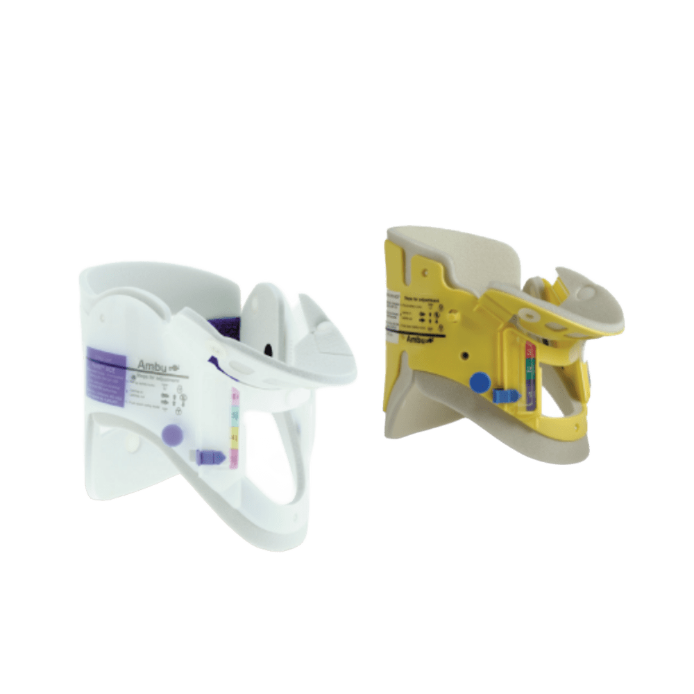 Collarín Ambu Perfit ACE – Inmovilización cervical ajustable y segura Collarín cervical desechable, radiotranslúcido y multitalla, con apertura traqueal, soporte para cánula nasal y sistema plano plegable. Ideal para emergencias y transporte.