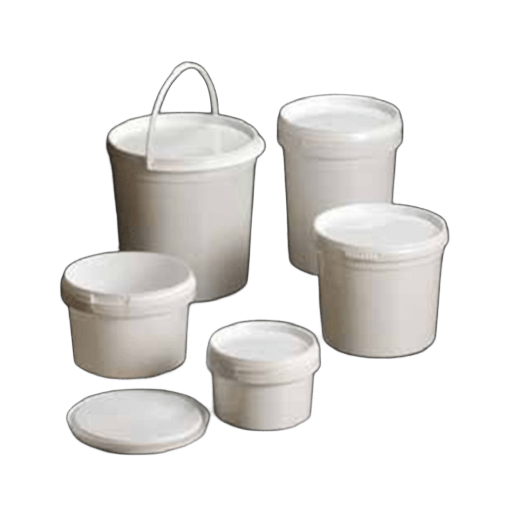 Recipiente troncocónico de 1 litro, fabricado en polipropileno copolímero blanco opaco, con tapa hermética e inviolable. Resistente a temperaturas de -20°C a 100°C, ideal para laboratorio y alimentos según Reglamento (UE) 10/2011.