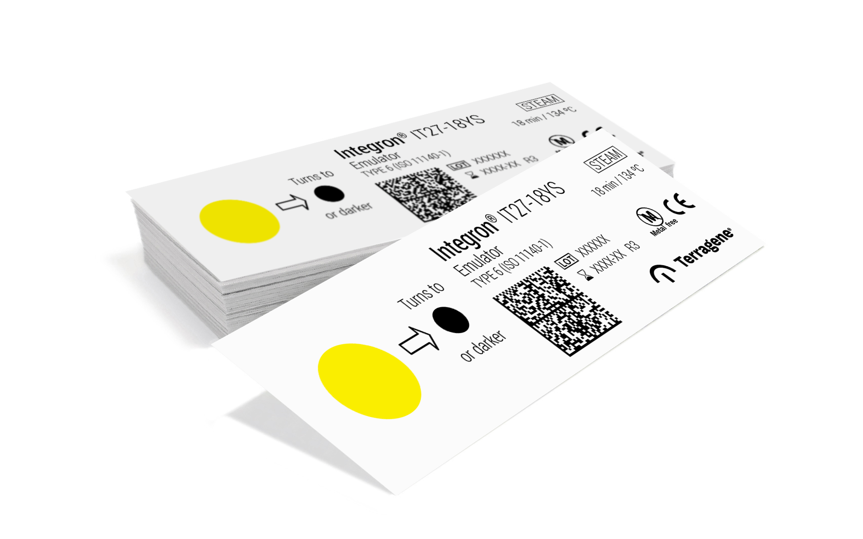 Indicador emulador tipo 6 para vapor, cambio de amarillo a negro, control preciso de esterilización 18 min/134 °C.