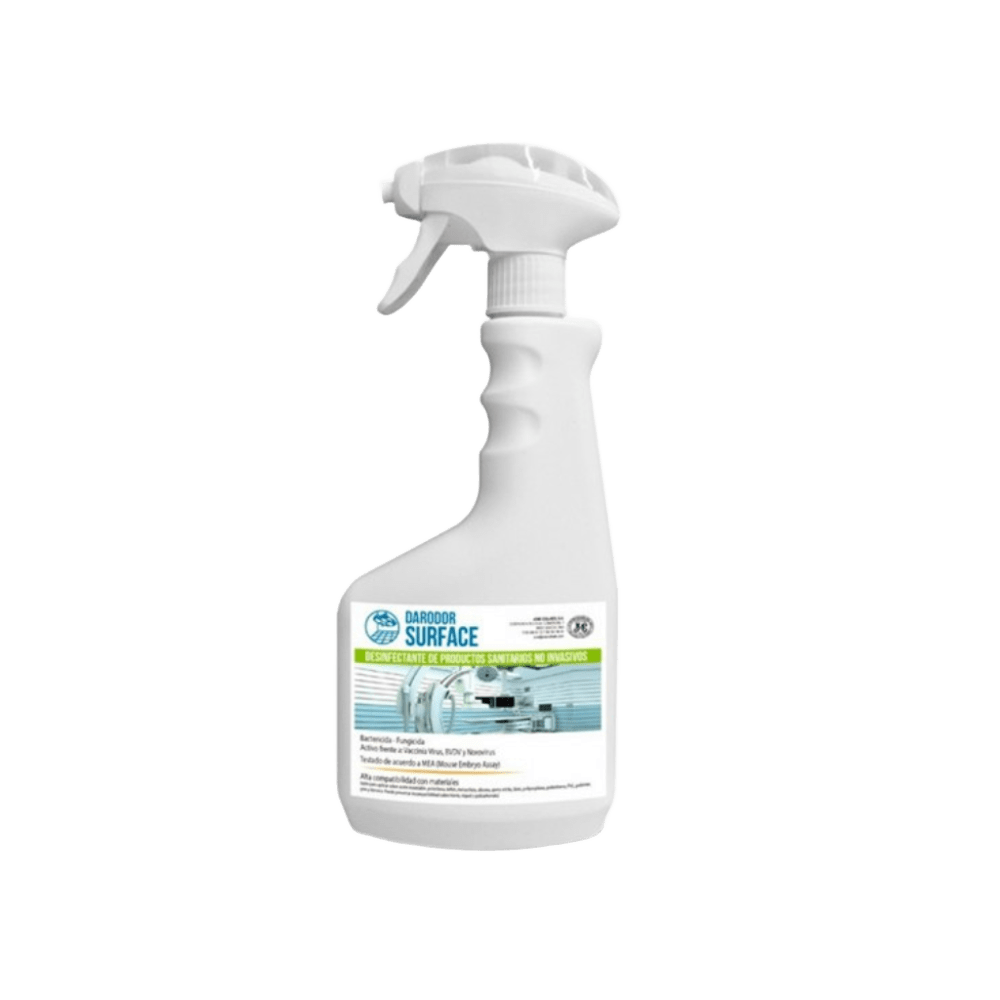 Darodor Surface 750 mL – Desinfección eficaz y segura para superficies sanitarias Darodor Surface es un desinfectante de superficies listo para usar, especialmente formulado para la limpieza de productos sanitarios no invasivos. Actúa como bactericida, fungicida y virucida, siendo eficaz frente a Murine Norovirus, Coronavirus, Vaccinia Virus y BVDV. Testado según el ensayo MEA (Mouse Embryo Assay), este producto ofrece una alta compatibilidad con distintos materiales, lo que lo hace seguro para un amplio rango de aplicaciones clínicas y hospitalarias. Además, su composición es biodegradable, respetando tanto la seguridad del entorno como la eficacia en la desinfección. Características destacadas: • Desinfectante de superficies listo para usar • Bactericida, fungicida y virucida (Norovirus, Coronavirus, Vaccinia, BVDV) • Uso en productos sanitarios no invasivos • Alta compatibilidad con materiales • Testado conforme al Mouse Embryo Assay (MEA) • Producto biodegradable • Formato: 750 mL con pulverizador .