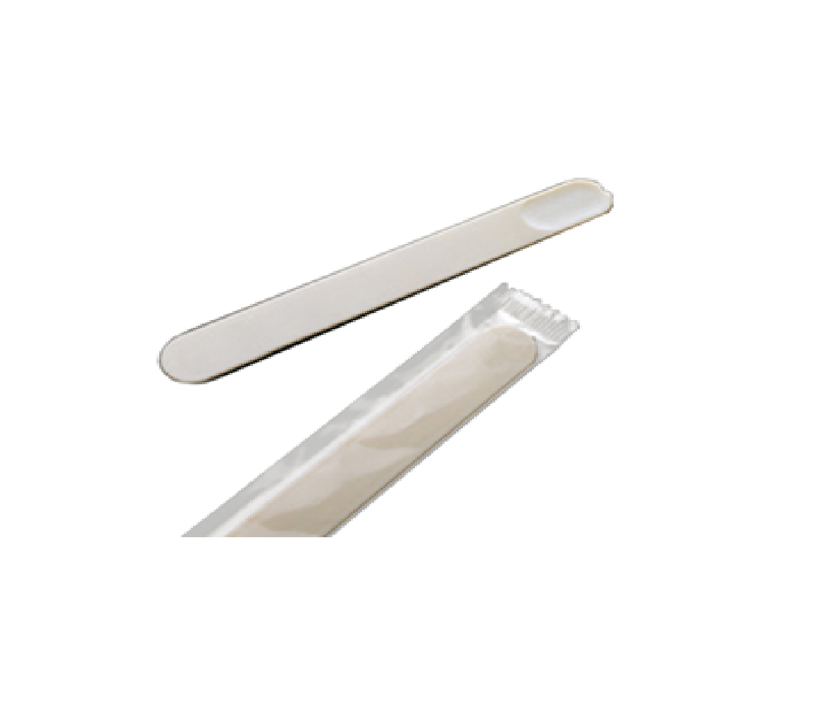 Depresor lingual de poliestireno blanco, suficiente rigidez y flexibilidad para evitar presión excesiva. Bordes redondeados, suave al tacto, resistente a fluidos, buena manejabilidad. Cumple con regulaciones FDA y UE para contacto alimentario. Disponible en estuches de 100 o 150 unidades, cajas de 900 o 2000 unidades