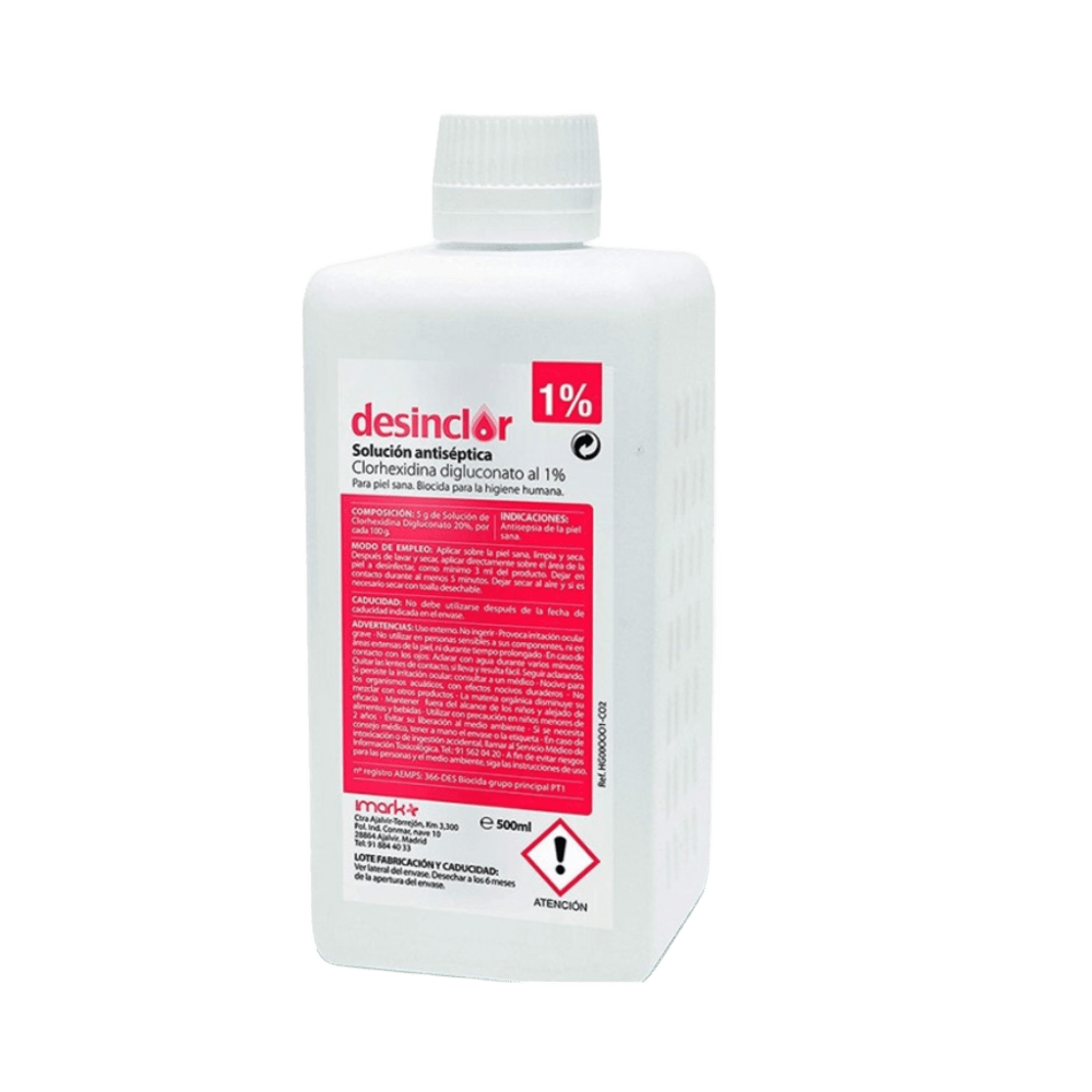Formato: 25 - SOLUCIÓN DESINCLOR CLORHEXIDINA DIGLUCONATO 1% ROJO - ENVASE DE 500 ccElige Formato:25 - SOLUCIÓN DESINCLOR CLORHEXIDINA DIGLUCONATO 1% ROJO - ENVASE DE 500 cc