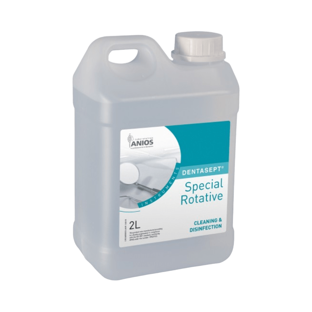 El Dentasept Special Rotative de Laboratoires Anios (ahora parte de Ecolab) es una solución detergente y desinfectante lista para usar diseñada específicamente para el tratamiento de fresas e instrumental rotatorio y de endodoncia antes de la esterilización.