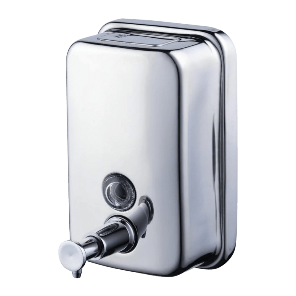 Jabonera Acero Inoxidable Brillo – Dosificación segura y elegante para entornos sanitarios Dosificador de jabón fabricado en acero inoxidable 304 con acabado brillo. Capacidad de 820 ml, con visor de llenado, tapa con cerradura y dimensiones compactas