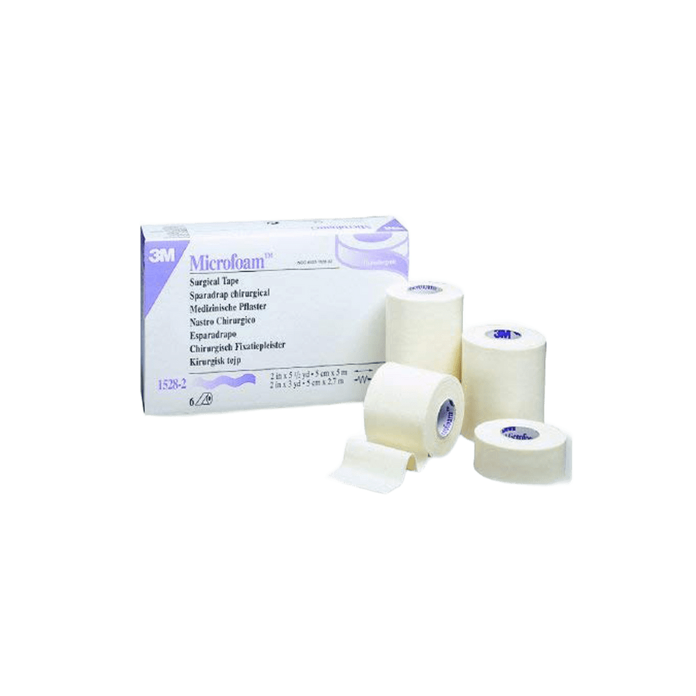 Cinta Quirúrgica de Espuma MICROFOAM Cinta elástica y compresiva de espuma distensible. Con soporte de cloruro de polivinilo oclusivo y adhesivo hipoalergénico de acrilato.