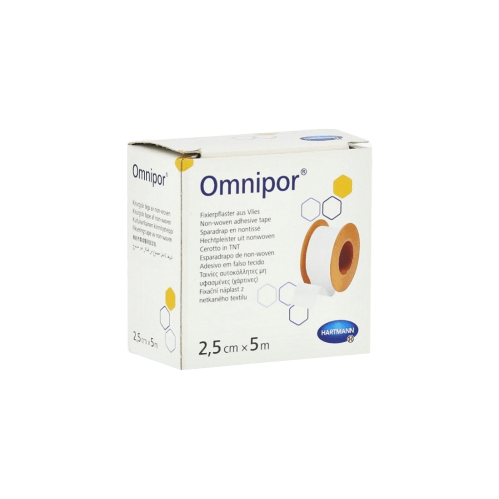 Omnipor – Esparadrapo hipoalergénico de tejido con adhesivo suave y fácil aplicación Omnipor es un esparadrapo hipoalergénico fabricado con tejido transpirable y adhesivo de caucho sintético (hotmelt), especialmente formulado para una sujeción segura y suave sobre pieles sensibles. No contiene látex, por lo que es ideal para pacientes con alergias o sensibilidad a este material. Su diseño con borde en zig-zag permite rasgarlo fácilmente sin necesidad de tijeras, lo que facilita su uso rápido en entornos clínicos. Puede retirarse sin dolor y sin dejar residuos sobre la piel. Además, no absorbe los Rayos X, permitiendo su uso durante procedimientos radiológicos sin interferencias. Omnipor es adecuado para fijar apósitos, gasas, cánulas u otros dispositivos médicos sobre piel intacta. Características destacadas: • Esparadrapo de tejido hipoalergénico • Adhesivo hotmelt (caucho sintético) – sin látex • Fácil de rasgar gracias al diseño en zig-zag • Se retira sin dolor y sin dejar residuos • Transpirable y suave para la piel • No interfiere con Rayos X • Ideal para fijación de apósitos o dispositivos .