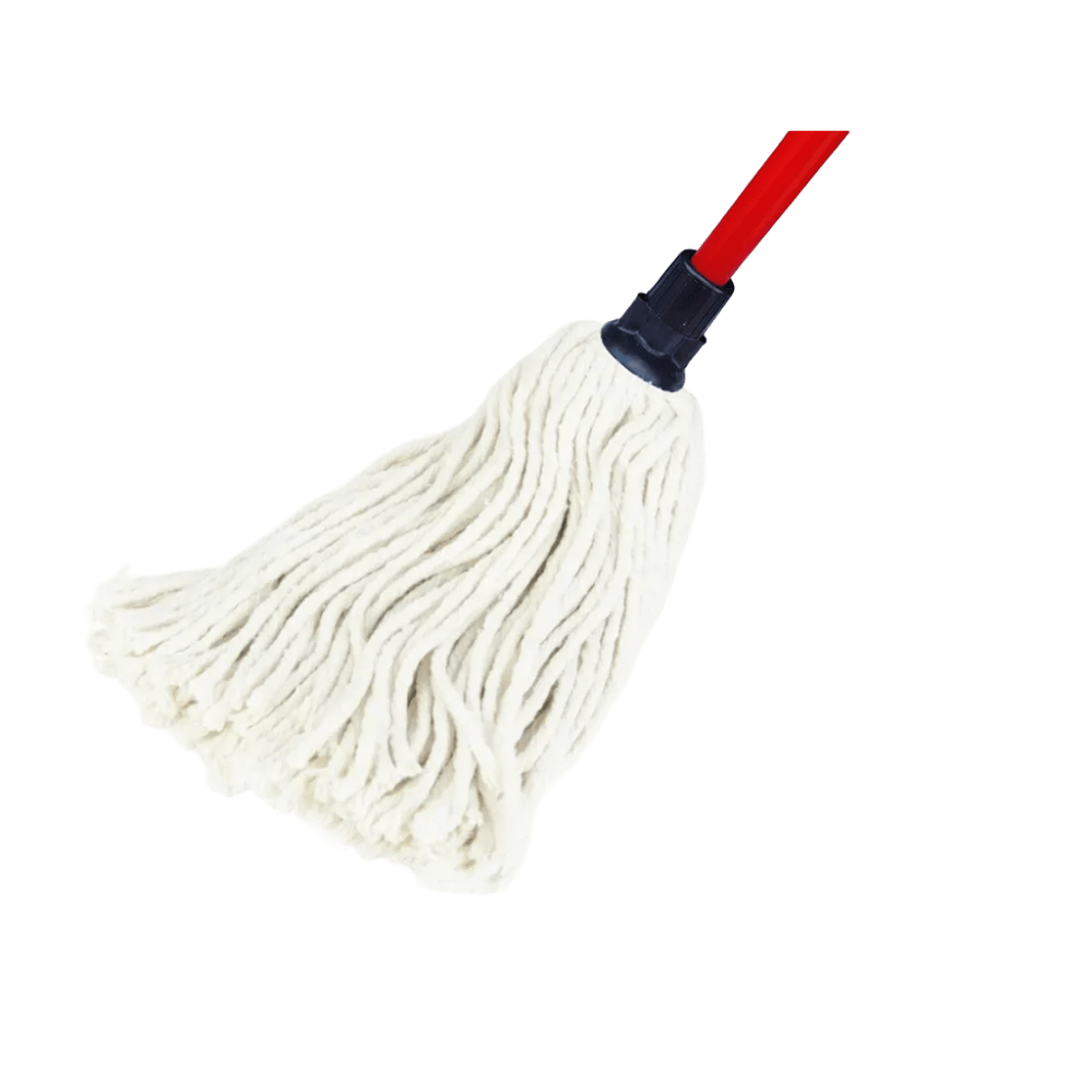 Fregona algodón industrial grueso – Alta absorción para grandes superficies Fregona de algodón blanco, resistente y de gran capacidad de secado. Casquillo rojo.