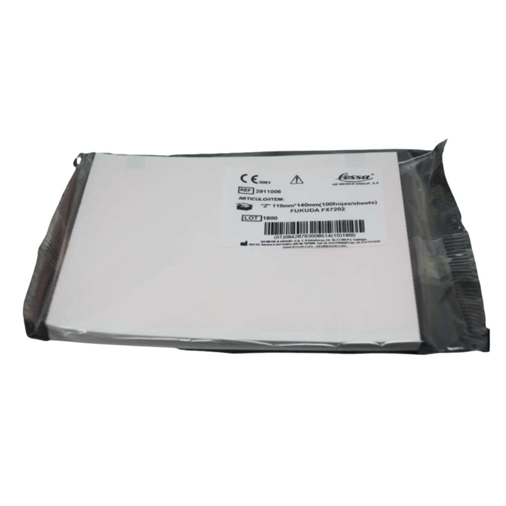Papel ECG en Block para Fukuda Denshi Fx7202 – 110 mm x 140 mm – 100 hojas Este papel térmico en formato block está diseñado especialmente para los electrocardiógrafos Fukuda Denshi Fx7202. Su presentación plegada en Z facilita una alimentación continua y sin interrupciones durante el registro de electrocardiogramas (ECG), garantizando trazados nítidos y confiables. Con medidas de 110 mm de ancho por 140 mm de alto, y un total de 100 hojas, este block ofrece una solución práctica y eficiente para entornos médicos exigentes. El color rojo mejora la visibilidad del trazado, permitiendo una lectura clara e inmediata. Características principales: Dimensiones del papel: 110 mm de ancho x 140 mm de alto. Presentación: papel térmico plegado en Z. Cantidad: block de 100 hojas. Color: rojo Tipo: papel térmico médico de alta calidad. Aplicaciones: electrocardiogramas (ECG).