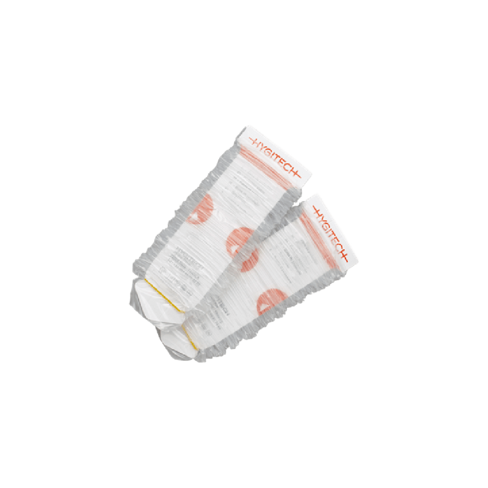 Funda para diálisis fabricada en tejido no tejido de polipropileno 100%, gramaje 40 g/m², dimensiones 66x21 cm (abierta 122x42 cm). Hipoalergénica, sin látex, radiotransparente, envasada a granel, vida útil 5 años. Cumple normativa CE y Reglamento (UE) 2017/745. Presentación en cajas de 100 unidades.