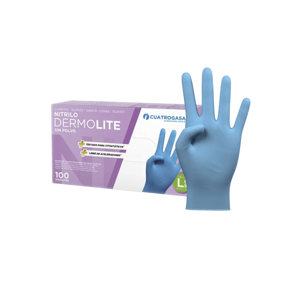 Guante Nitrilo Sin Polvo Dermolite Guante de nitrilo sin polvo, altamente sensible y seguro para el contacto con alimentos.