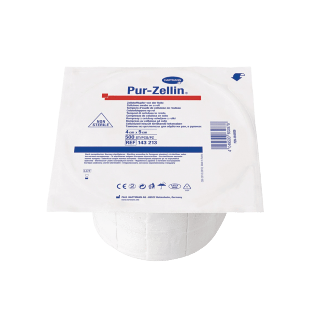 Rollo Pur-Zellin No Estéril 4 × 5 cm – Celulosa PreCortada Rollo de celulosa extra-blanqueada, no estéril, precortado y listo para su uso. Ideal para cuidados generales y limpieza de la piel. Presentación en unidad.