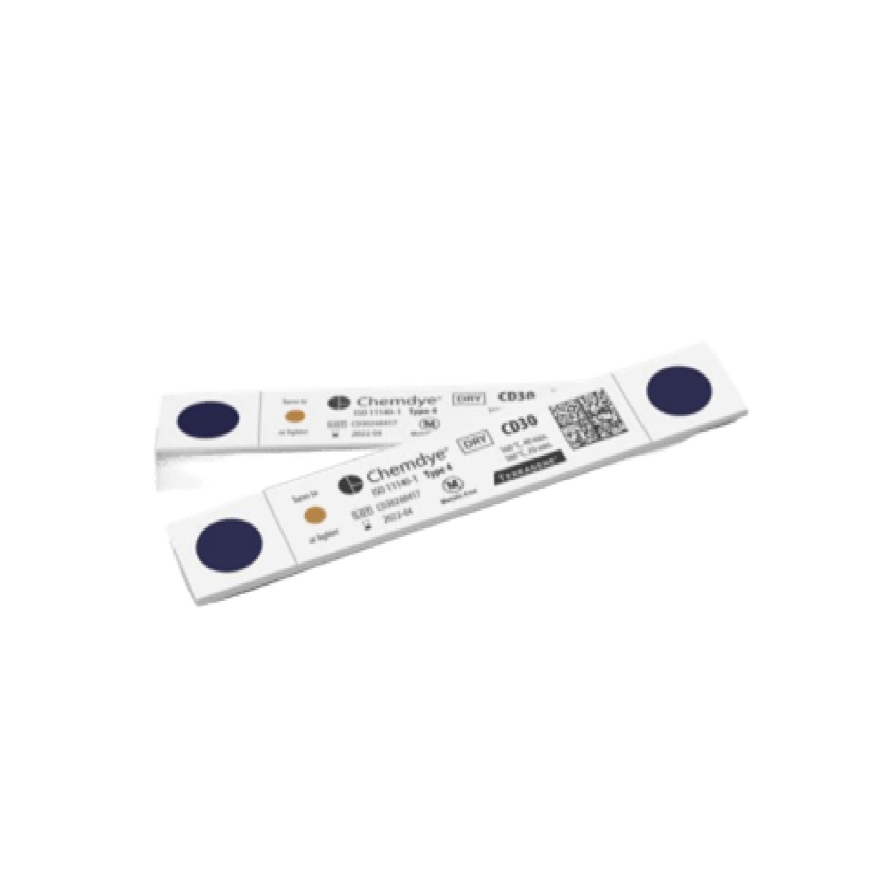 Indicador químico multivariable tipo 4, diseñado para monitorear procesos de esterilización por calor seco (160 °C/40 min o 180 °C/20 min). Tira de 105 x 18 mm, impresa con tinta reactiva que cambia de azul oscuro a marrón al alcanzar los parámetros críticos de tiempo y temperatura. Libre de metales pesados tóxicos, cumple ISO 11140-1, alta fiabilidad para control interno en hospitales y laboratorios. Caja de 250 unidades