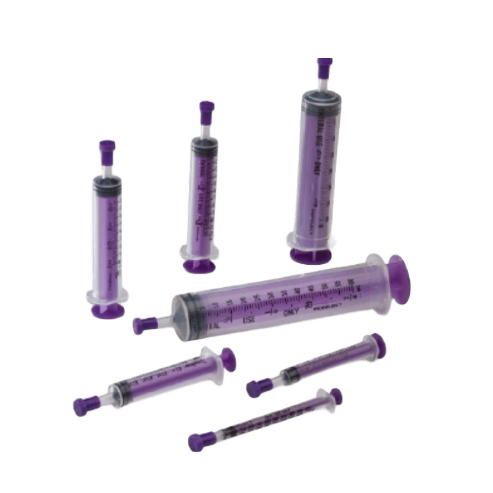 Jeringa Enteral ENFit MONOJECT – Dosis Precisa y Uso Seguro Jeringa enteral estéril con punta para dosis bajas, émbolo púrpura y conexión ENFit. Diseñada para una administración precisa de medicamentos y nutrición.