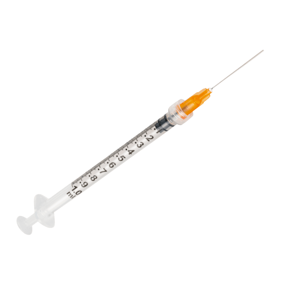 Jeringa esterilizada SOL-M™ para administración de insulina, con aguja intercambiable de 25G x 5/8, ideal para un uso seguro y preciso.