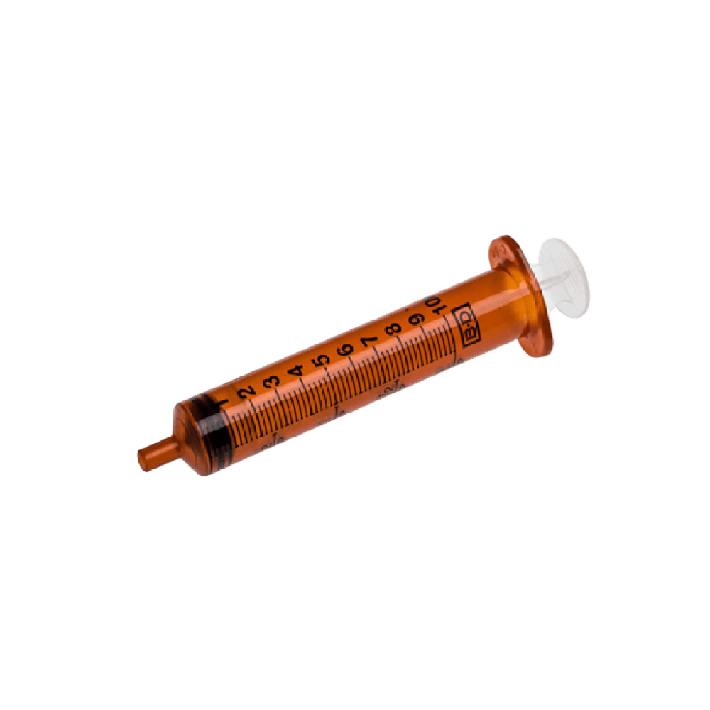 Jeringa BD Luer Lock Opaca de Tres Piezas sin Aguja, Estéril, sin Látex Jeringa estéril de un solo uso con sistema Luer Lock y cuerpo opaco, diseñada para perfusión, irrigación o administración precisa de medicamentos. Libre de látex.