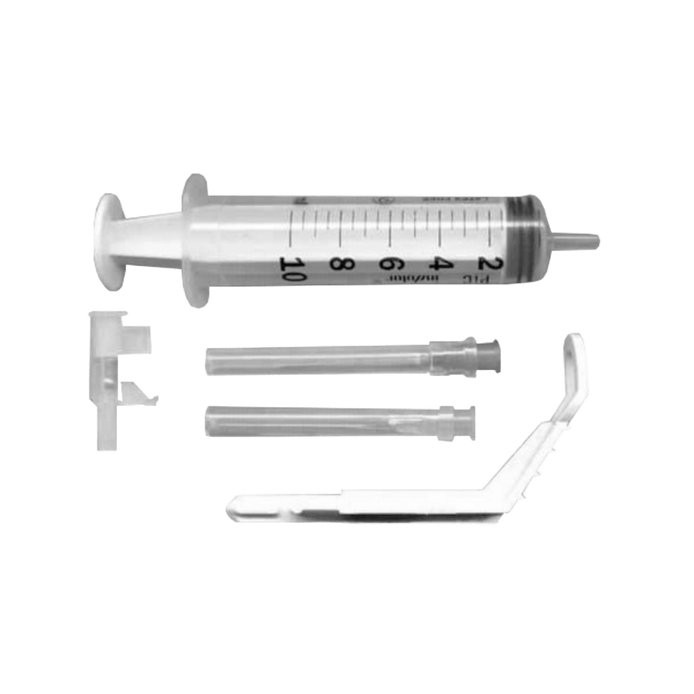 Kit de Aguja y Jeringa para Mesoterapia – Estéril y de Un Solo Uso Kit completo para la administración de tratamientos mesoterápicos. Incluye jeringa, aguja de extracción, válvula, aguja de mesoterapia y mirilla. Estéril y listo para usar.