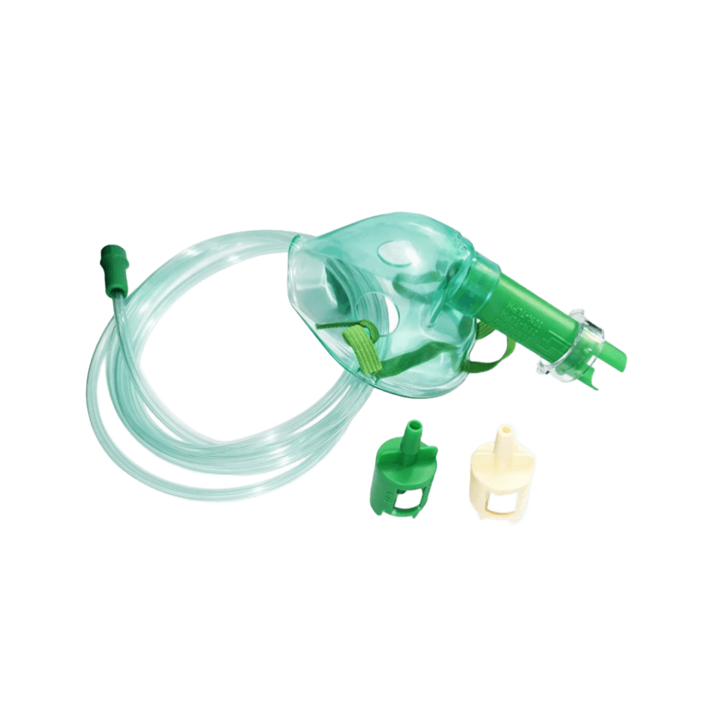 Oximask™ – Mascarilla de Oxígeno para Paciente Traqueostomizado Oxigenoterapia precisa y adaptable con múltiples concentraciones Oximask™ es una mascarilla de oxígeno tipo Venturi, especialmente diseñada para pacientes traqueostomizados que requieren oxigenoterapia controlada. Disponible en versiones para adultos y pediátricos, Oximask™ permite administrar oxígeno en 7 concentraciones diferentes (24 %, 26 %, 28 %, 30 %, 35 %, 40 %, 50 %) gracias a sus conectores codificados por color (verde para bajas concentraciones y marfil para altas). Fabricada en PVC blando anatómico, cuenta con una pieza nasal y elástico ajustable que proporcionan mayor comodidad al paciente. Su tubo de conexión de 2 metros, flexible y anti-colapsable, garantiza un suministro continuo y seguro de oxígeno. Características y beneficios: • 7 concentraciones de oxígeno tipo Venturi (bajas y altas) • Disponible para pacientes adultos y pediátricos • Carilla anatómica suave que se adapta cómodamente al rostro • Pieza nasal y cinta elástica ajustable • Tubo de 2 metros anti colapsable incluido • Libre de látex .