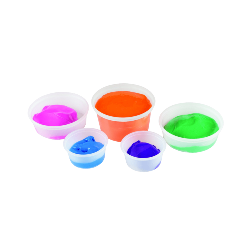 Masilla terapéutica con codificación por colores, diseñada para ejercicios de mano con distintos niveles de resistencia. No grasa, fácil de manipular y adaptable a cada paciente.