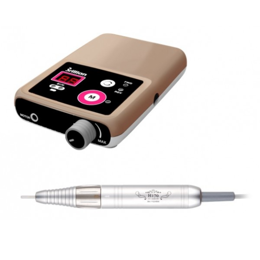 El micromotor B-170 Portátil es un dispositivo de la marca Saeshin Brillian diseñado para profesionales que requieren movilidad, como podólogos, esteticistas o técnicos de uñas. Su funcionamiento por inducción (sin escobillas) lo hace silencioso, con pocas vibraciones y duradero
