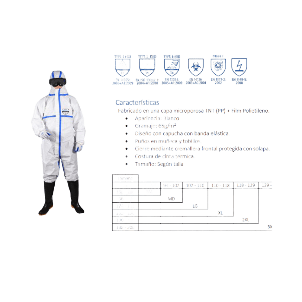 El mono de protección tipo 4B/5B/6B en talla XL está diseñado para proteger al usuario frente a riesgos biológicos, productos químicos líquidos y partículas sólidas peligrosas. Clasificado como Equipo de Protección Individual (EPI) de categoría III, este mono ofrece una barrera eficaz frente a agentes infecciosos, salpicaduras químicas y aerosoles líquidos. Confeccionado en material transpirable y resistente, incluye costuras selladas y una cremallera cubierta para una mayor estanqueidad. Su diseño ergonómico permite libertad de movimiento sin comprometer la seguridad, siendo ideal para su uso en hospitales, laboratorios, servicios de emergencias, zonas de descontaminación e industria. El mono de protección tipo 5B/6B, categoría III, talla L proporciona una barrera eficaz contra partículas sólidas peligrosas y salpicaduras limitadas de líquidos químicos. Está diseñado para proteger al usuario en entornos donde existe riesgo de exposición a agentes contaminantes no presurizados o aerosoles secos. Fabricado en material ligero y transpirable, permite un uso prolongado con buena movilidad y confort. Su cierre con cremallera cubierta, los puños elásticos y el ajuste ergonómico garantizan una protección fiable sin comprometer la comodidad. Apto para uso sanitario, farmacéutico, limpieza industrial, control de infecciones y manipulación de sustancias peligrosas. Características: • MONO DE PROTECCION CAT. III TIPO 4B / 5B / 6B TALLA XL: • Categoría III – Protección elevada. • Tipo 4B: Protección contra aerosoles líquidos. • Tipo 5B: Protección contra partículas sólidas. • Tipo 6B: Protección limitada contra salpicaduras líquidas. • Talla: XL (extra grande). • Diseño ergonómico, transpirable y cómodo. • Cremallera cubierta y costuras selladas. • Material sin látex, hipoalergénico. • Color habitual: Blanco o azul (según modelo). • De un solo uso, no reutilizable. • Uso recomendado en entornos clínicos, químicos, farmacéuticos y de emergencia. • MONO DE PROTECCION CAT. III TIPO 5B / 6B TALLA L: • Categoría III – Alta protección. • Tipo 5B: Protección frente a partículas sólidas. • Tipo 6B: Protección frente a salpicaduras líquidas leves. • Talla: L (grande). • Material transpirable, sin látex. • Cierre con cremallera y solapa de protección. • Puños y tobillos elásticos para mejor ajuste. • Color habitual: Blanco. • Desechable, no reutilizable. • Uso recomendado en hospitales, laboratorios, limpieza industrial y prevención de riesgos biológicos. .