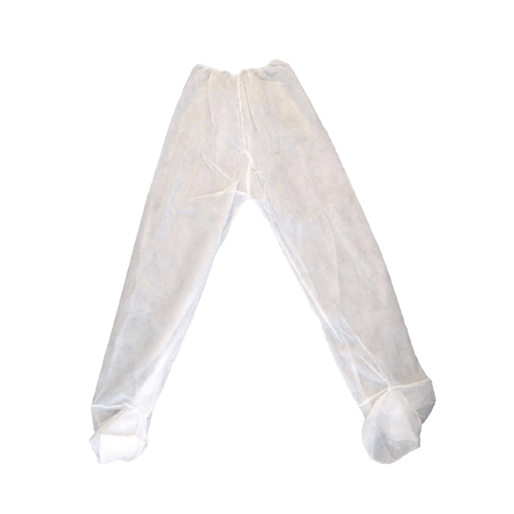 Pantalón desechable plastificado para presoterapia, impermeable, talla única. Protege equipos y usuario.