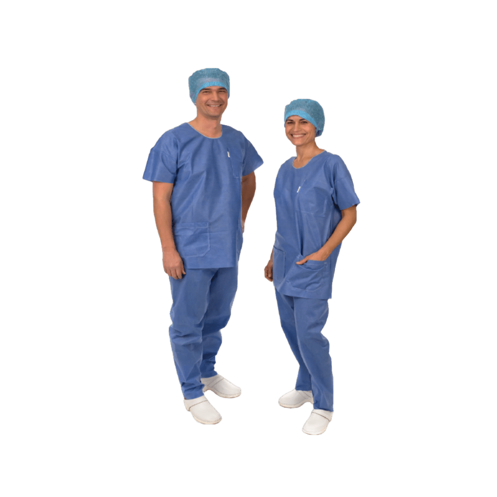 Pijama TrueProtect – Frescura y confort extra en tu día a día El pijama TrueProtect es la elección ideal para el personal asistencial que busca máxima protección y confort en su vestimenta de trabajo. Confeccionado con tejido sin tejer spunbond verde 49g/m² de polipropileno 100% y antiestático, este pijama actúa como una barrera efectiva frente a la flora bacteriana, protegiendo al paciente durante los procedimientos. El diseño incluye una camisa con grandes bolsillos y un pantalón, ambos empaquetados de manera individual para facilitar su uso y almacenamiento. El pijama está disponible en una amplia gama de tallas, desde XS hasta XXXL, y su elegante color verde asegura una apariencia profesional en todo momento. Características y beneficios: • Tejido sin tejer de alta calidad (49g/m²) con propiedades antiestáticas • Protege contra la flora bacteriana, creando una barrera de seguridad para el paciente • Camisa con amplios bolsillos y pantalón, todo empaquetado individualmente • Disponible en tallas XS a XXXL • Color verde, profesional y moderno • Composición: 100% polipropileno, material ligero y confortable • Ideal para su uso en entornos clínicos y quirúrgicos .