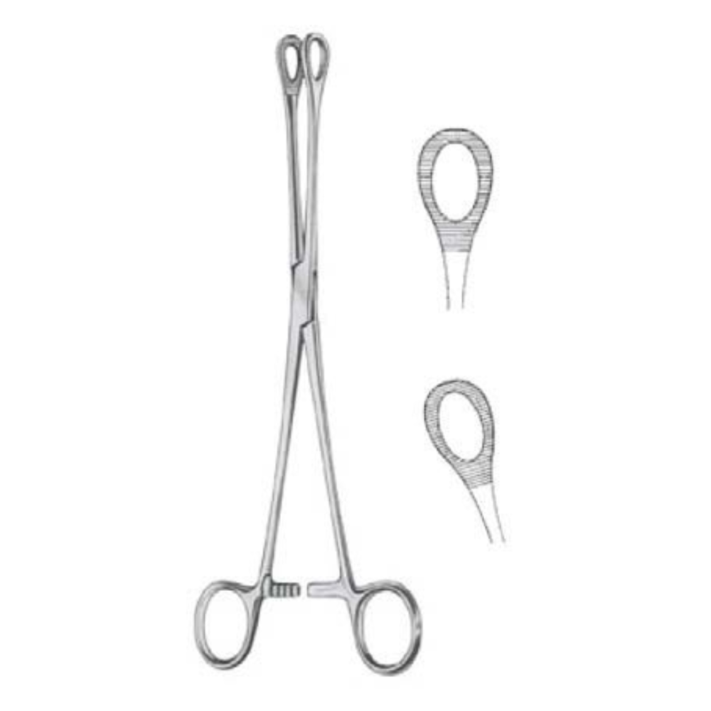 Pinza quirúrgica recta, sujeta gasas con aros, acero inoxidable