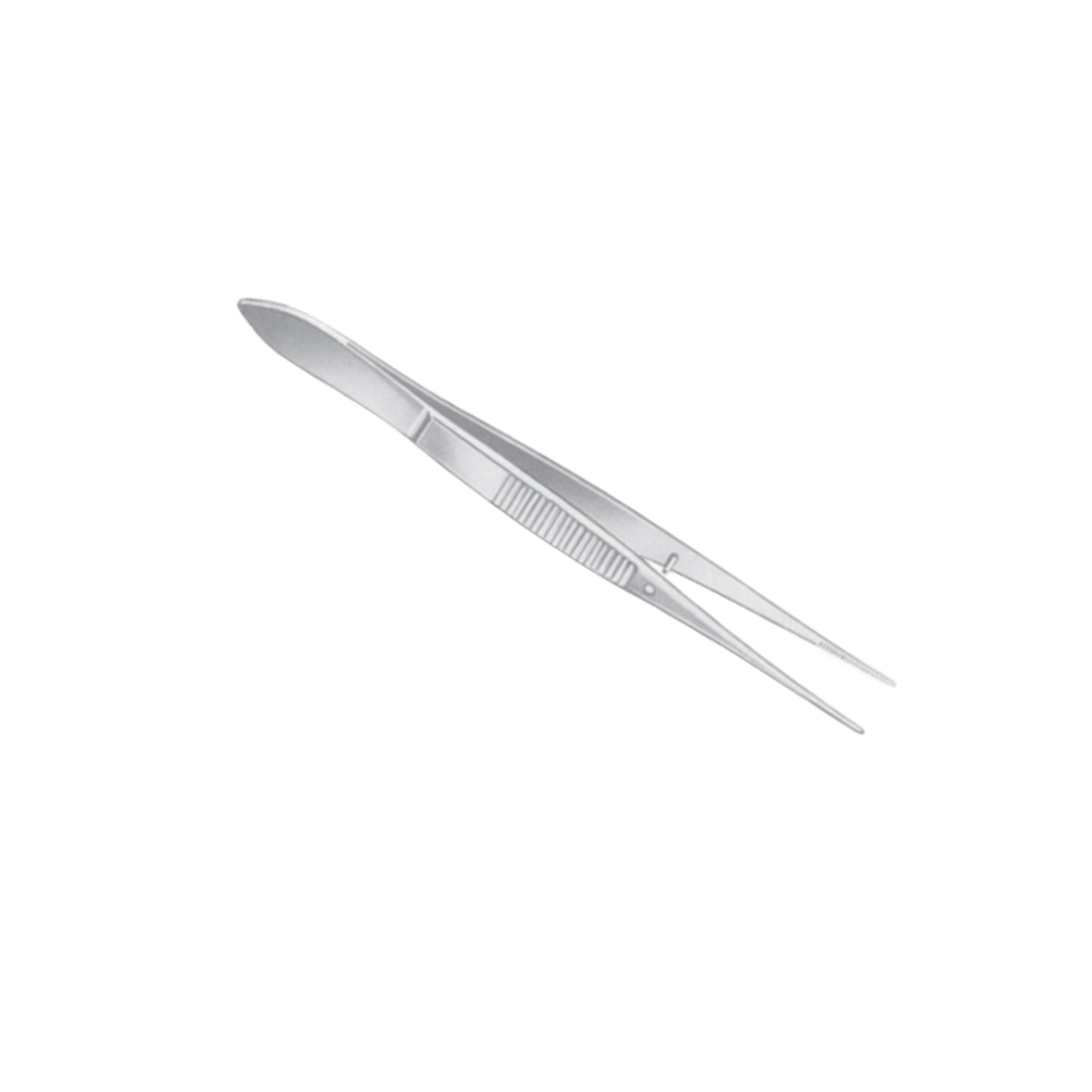 Pinza profesional de punta fina y estriada, ideal para trabajos de precisión. Fabricada en acero inoxidable, antiestática, resistente al calor, esterilizable en autoclave y apta para ultrasonidos.